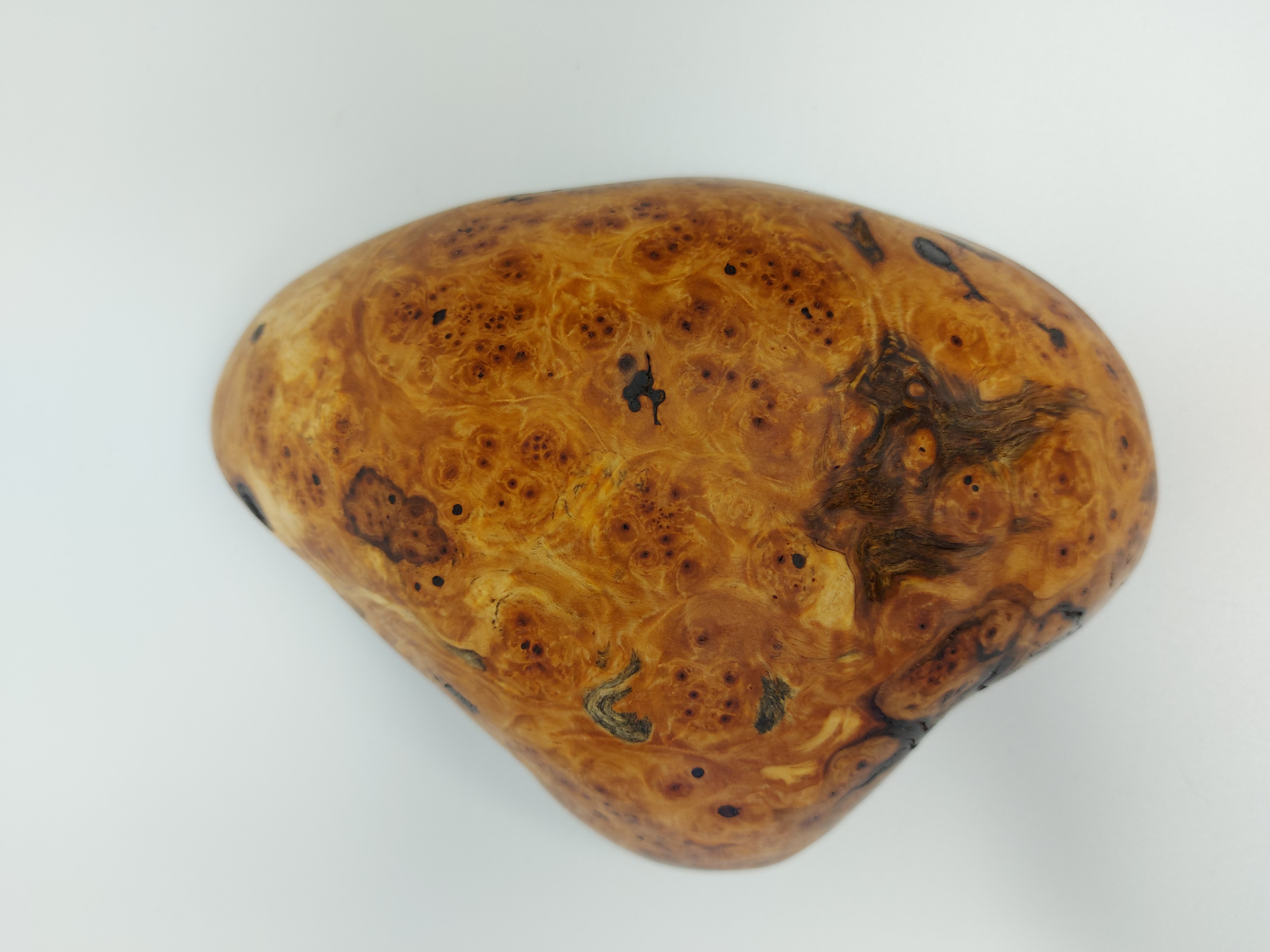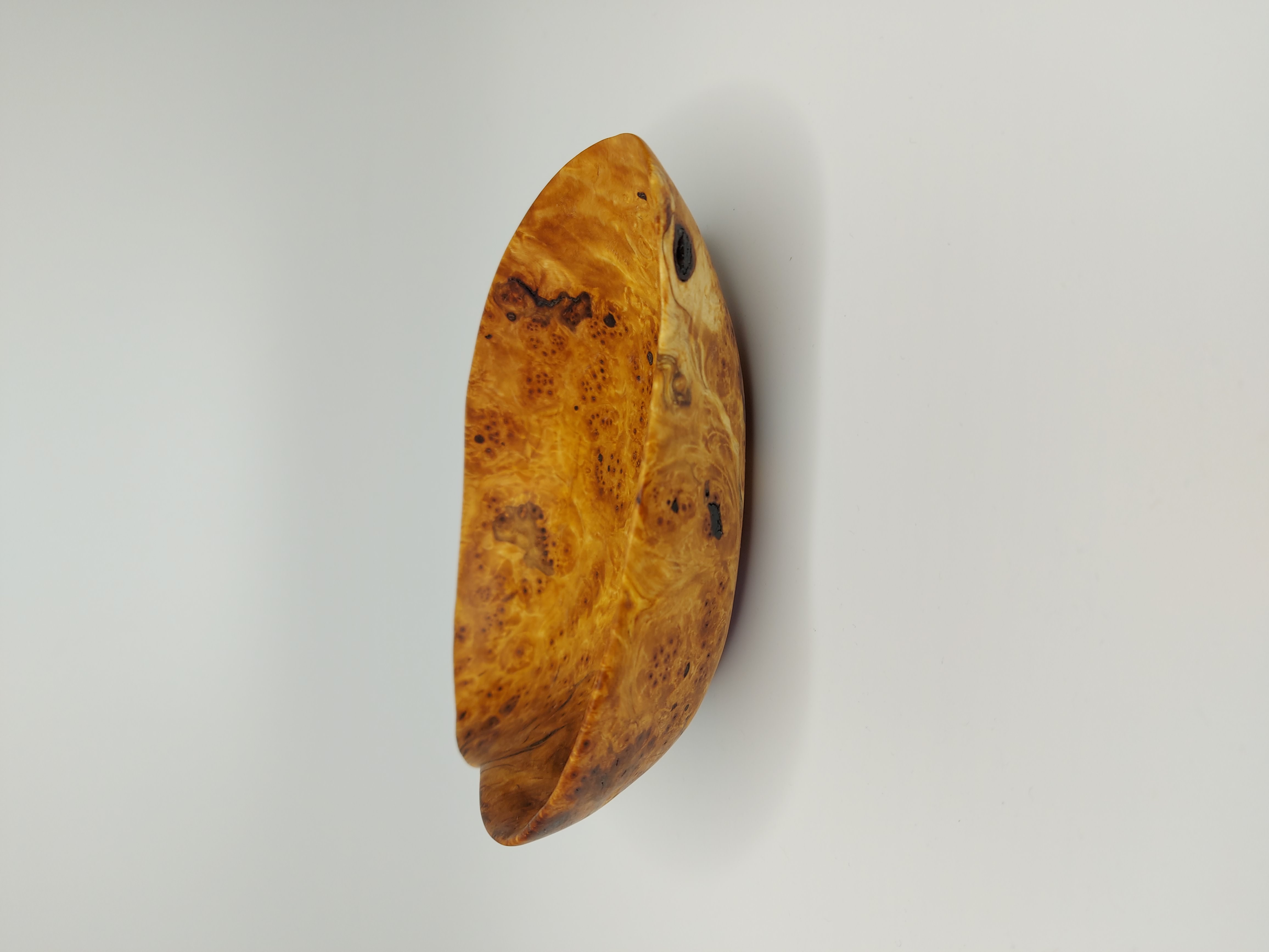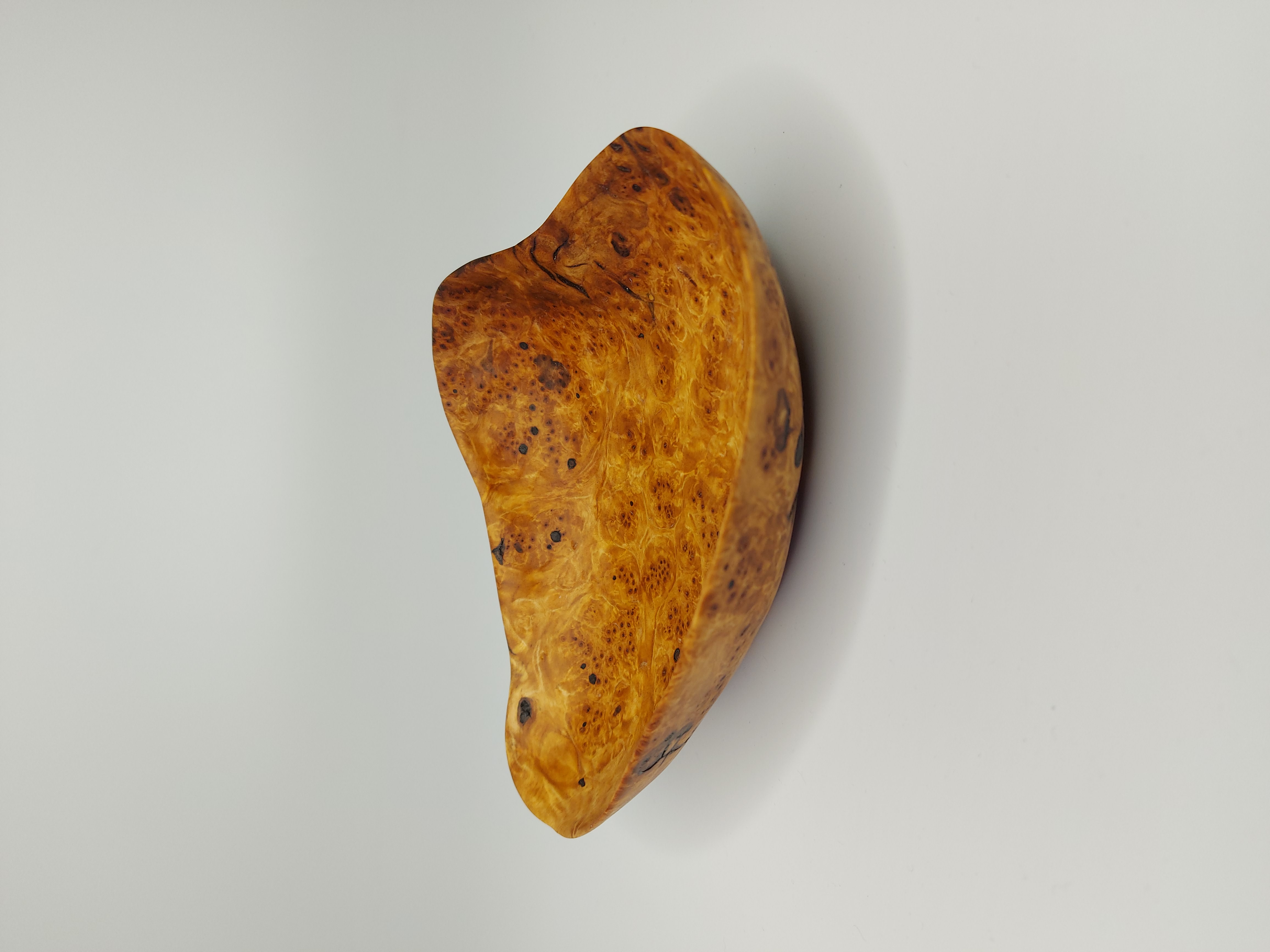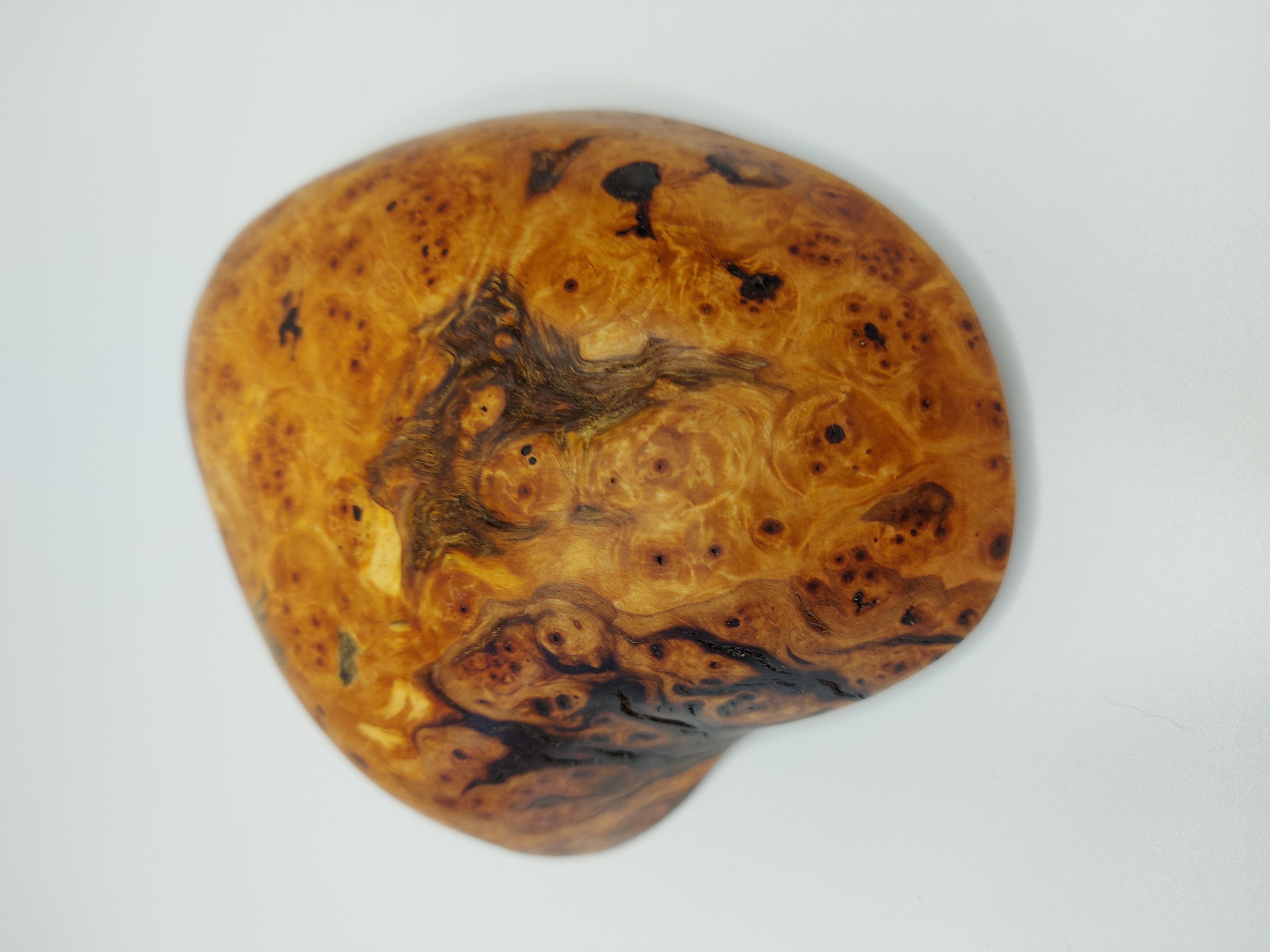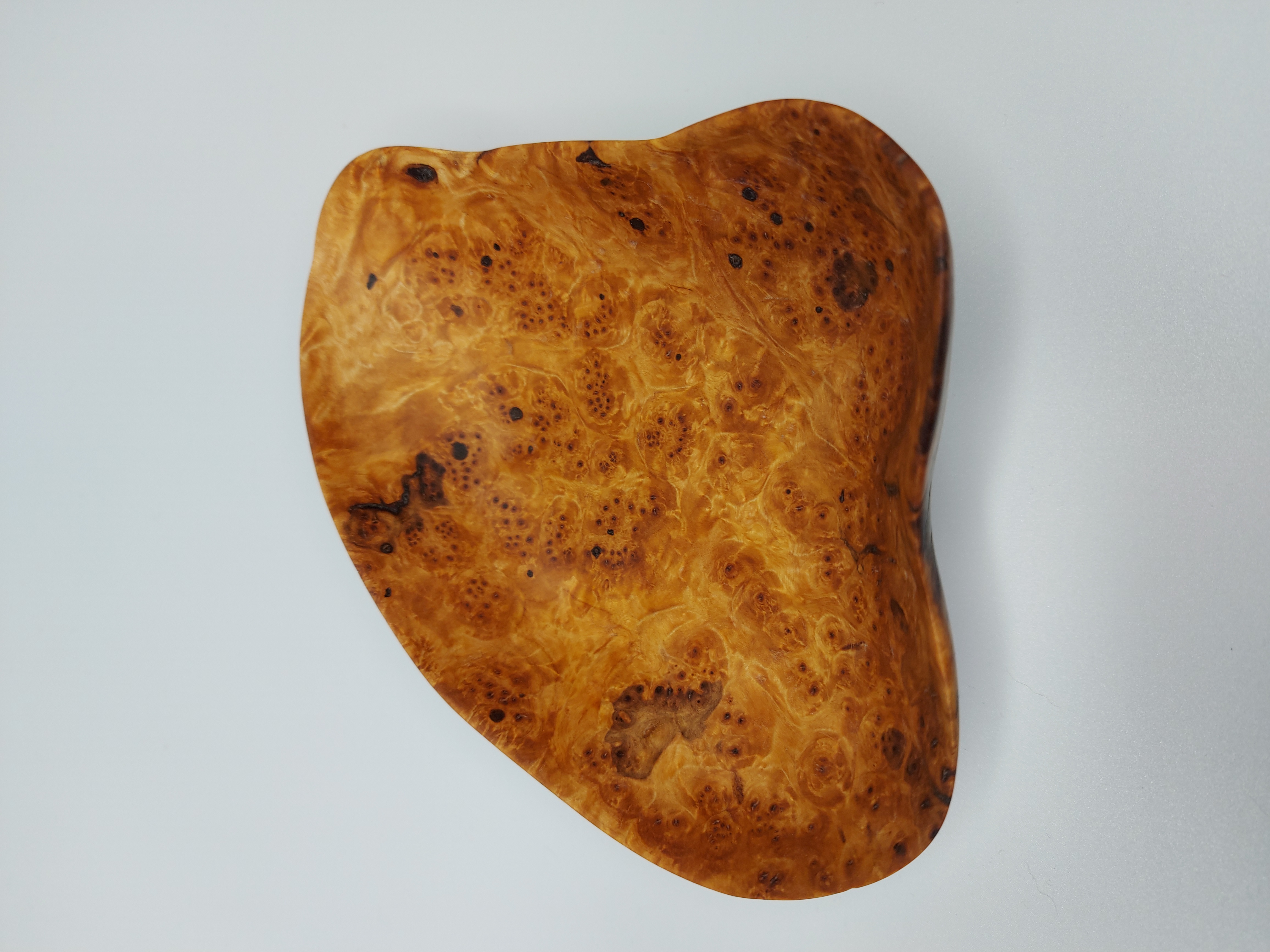 Dlabaná miska. Dřevo je ze zlomené Břízy. Přesněji se jedná o očkovitost, která vzniká shlukem malých větviček. Většinou je k vidění pouze menší shluk větviček, který na dřevě vytvoří bouli. Něco podobného není úplně snadné najít v takovém rozsahu, aby z toho mohla vzniknout mísa. Povrchová úprava přírodním olejem.